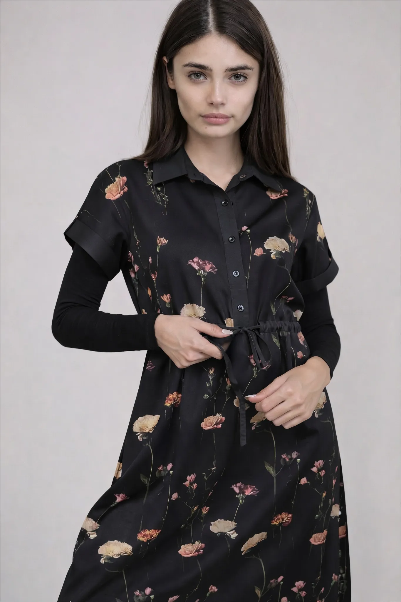 סרפן מבד קרפ בהדפס פרחים בגווני הורוד