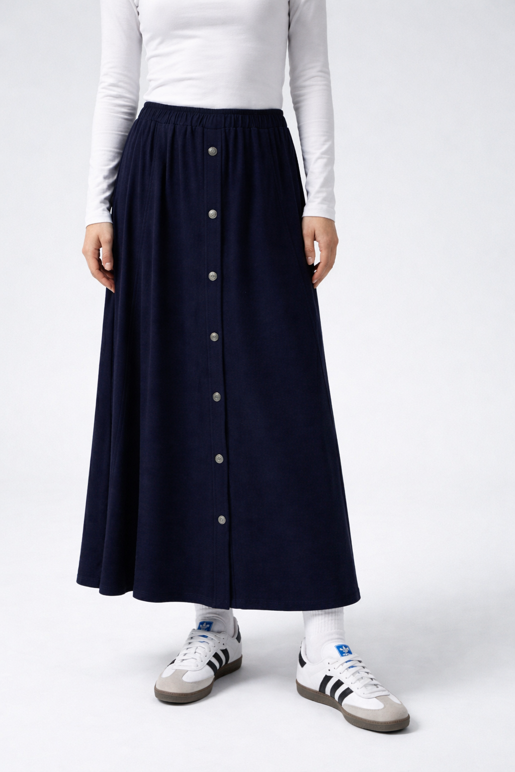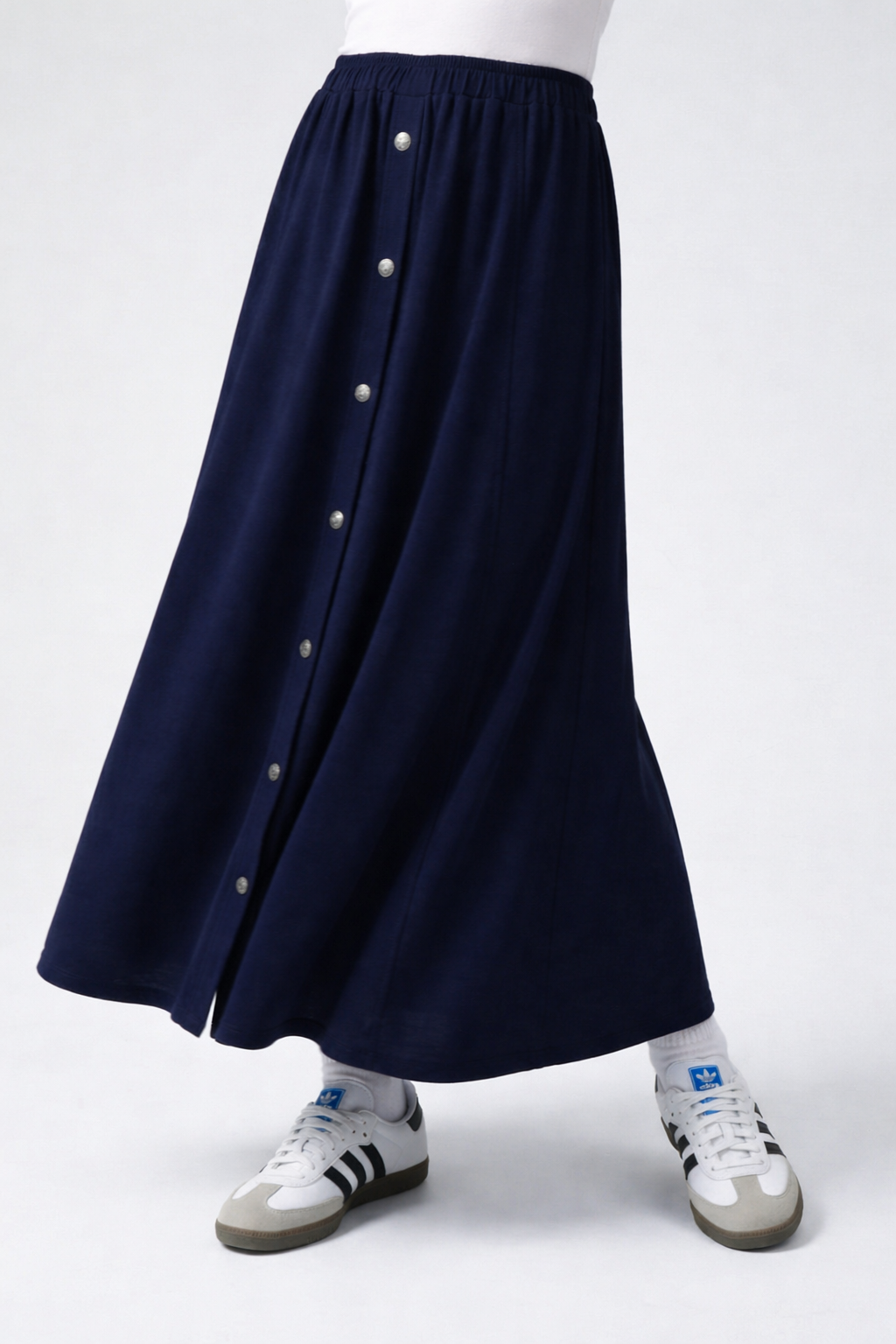 חצאית ג'רסי כפתרה אורך כחול